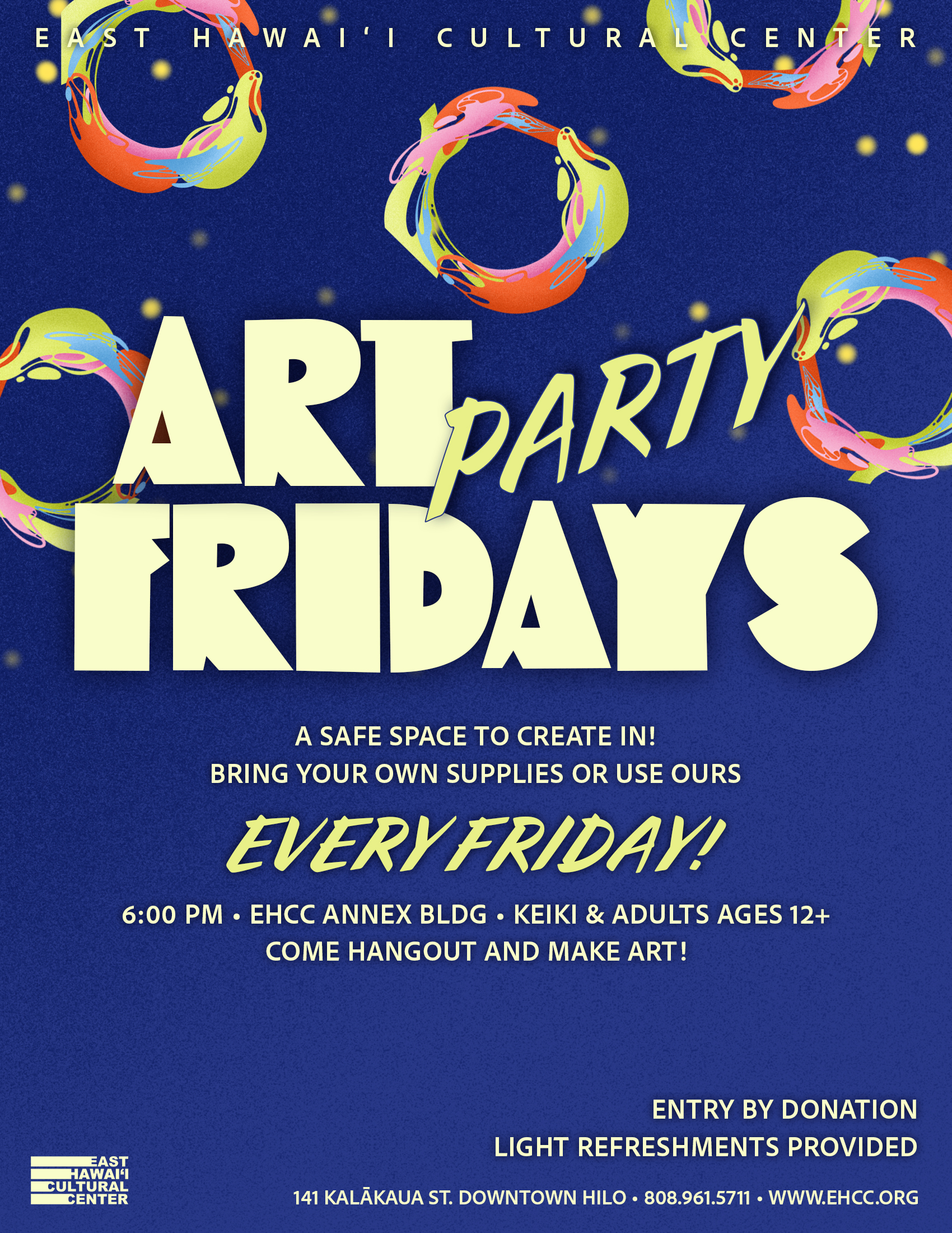 It will be happening every Friday beginning this Friday, December 5th, 2025 onward. Same time, 6:00pm till pau in the annex ceramics studio (behind the main building).