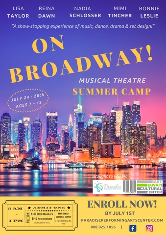 Students will receive 25 hours of Musical Theatre instruction through daily classes of Dance, Music, Acting and Set/Prop design in the gorgeous upstairs theatre of the East Hawaii Cultural Center.