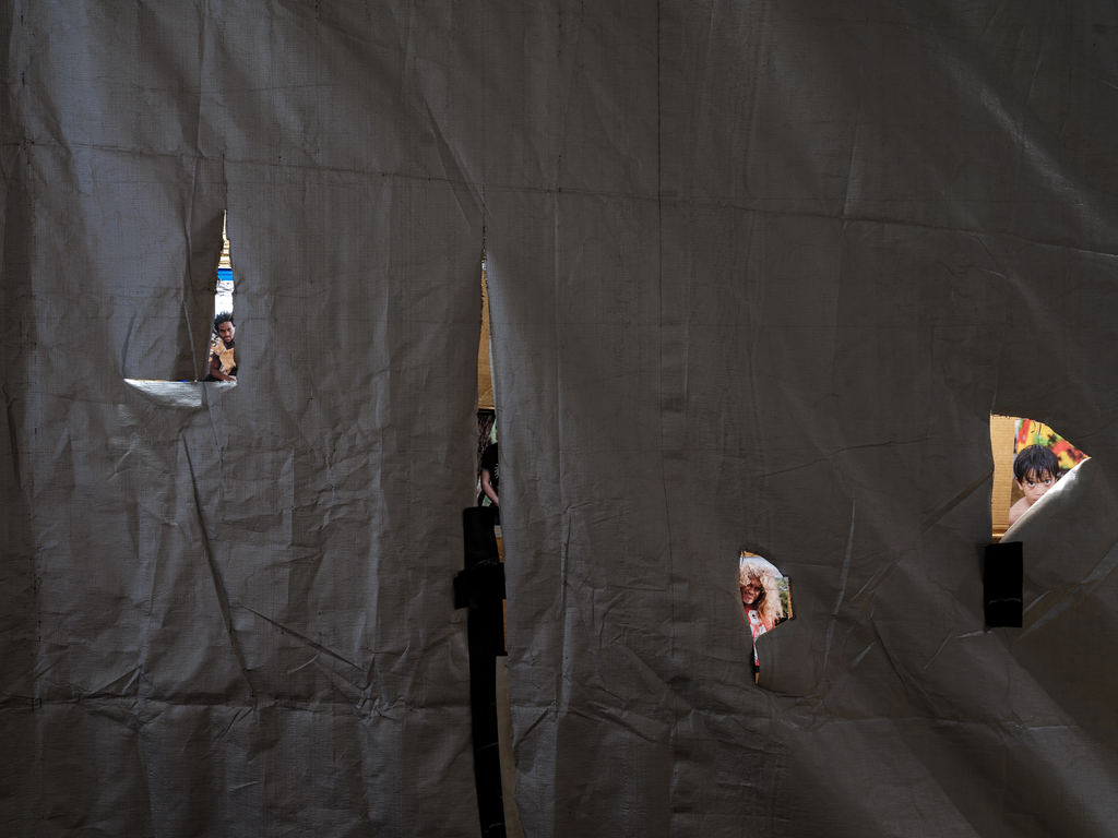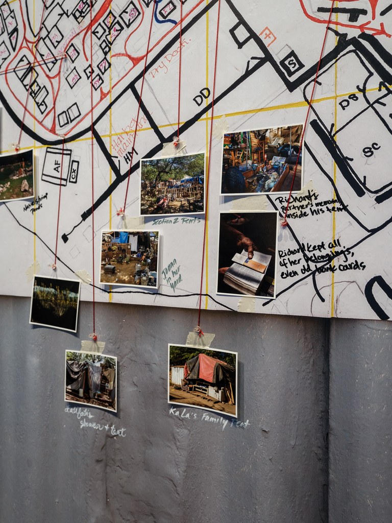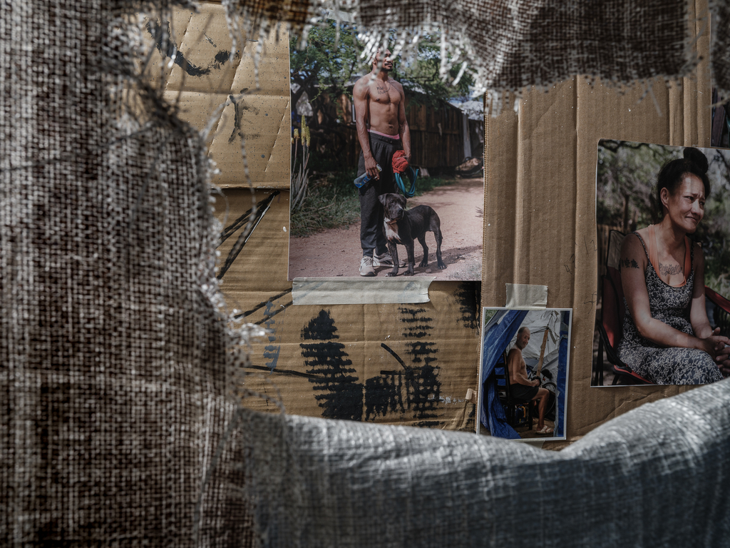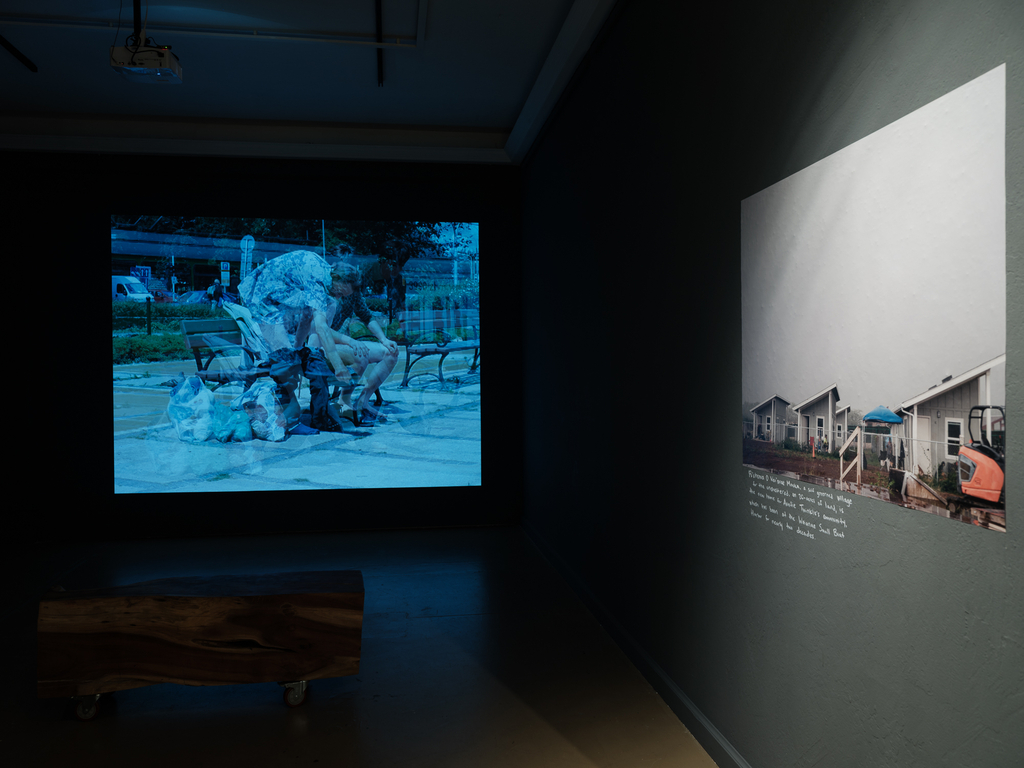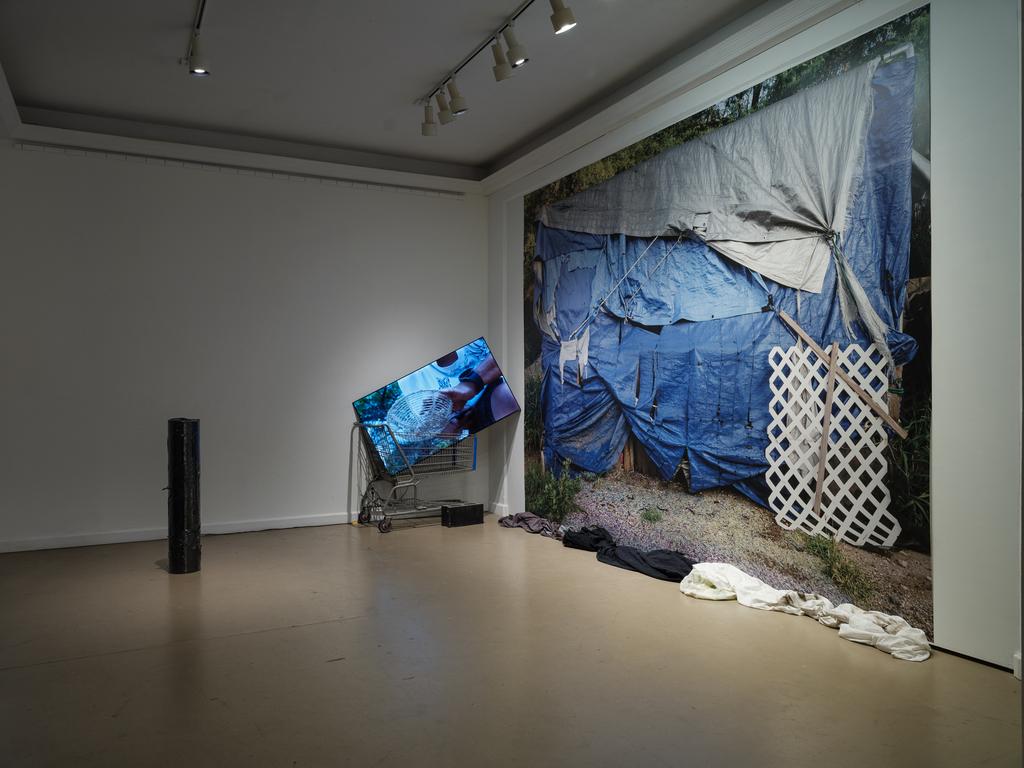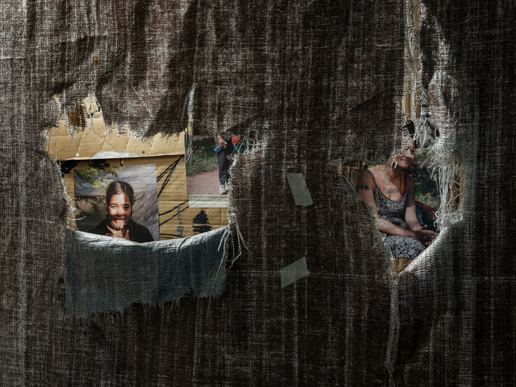Photographs from Puʻuhonua O Waiʻanae complement the installations by Baronet and Orlowski, allowing residents there to show themselves as they wish to be seen. For over a decade, the community on ‘Oahu founded by Aunty Twinkle has served as a refuge and place of empowerment for those shut out of conventional housing—many of them Native Hawaiian, many queer, many displaced by poverty or social expectations they could never meet.