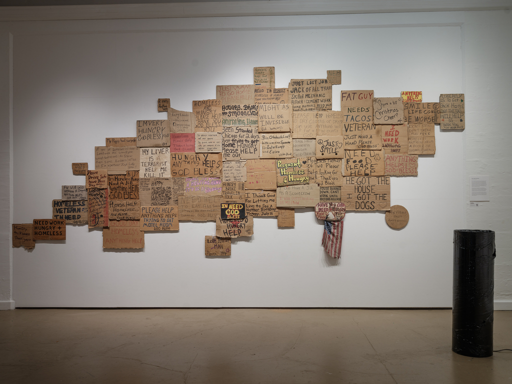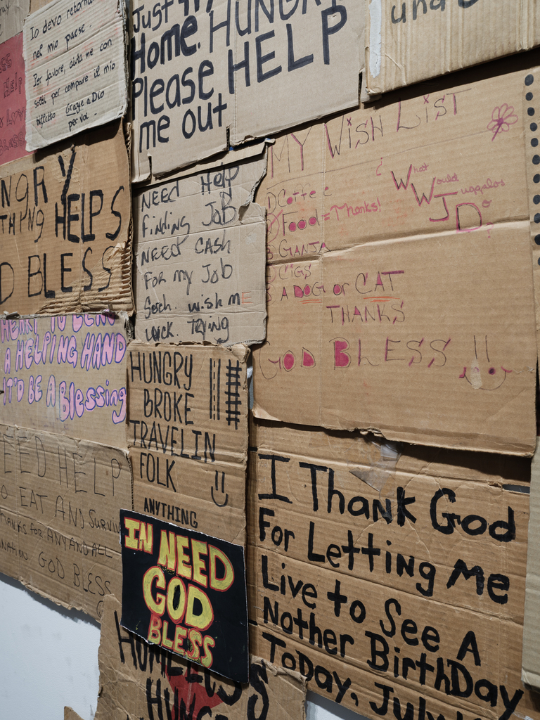 Says Baronet, who has been purchasing signs from homeless people since 1993 to use in his art installations, “Immediately the dynamic changed between us, as we both had something the other wanted…I began to see and hear them, and realized how vastly different they (and their stories) were from each other.” Hundreds of signs from his collection will be on view at EHCC. During the opening, at 7pm in EHCC’s Kahua ‘Elua theatre, Baronet will present images and talking about “Signs of Humanity” project, his 31-day, 24-city cross-country trek through the United States to engage with individuals and buy their signs.