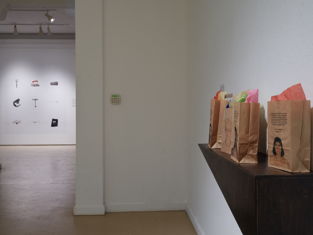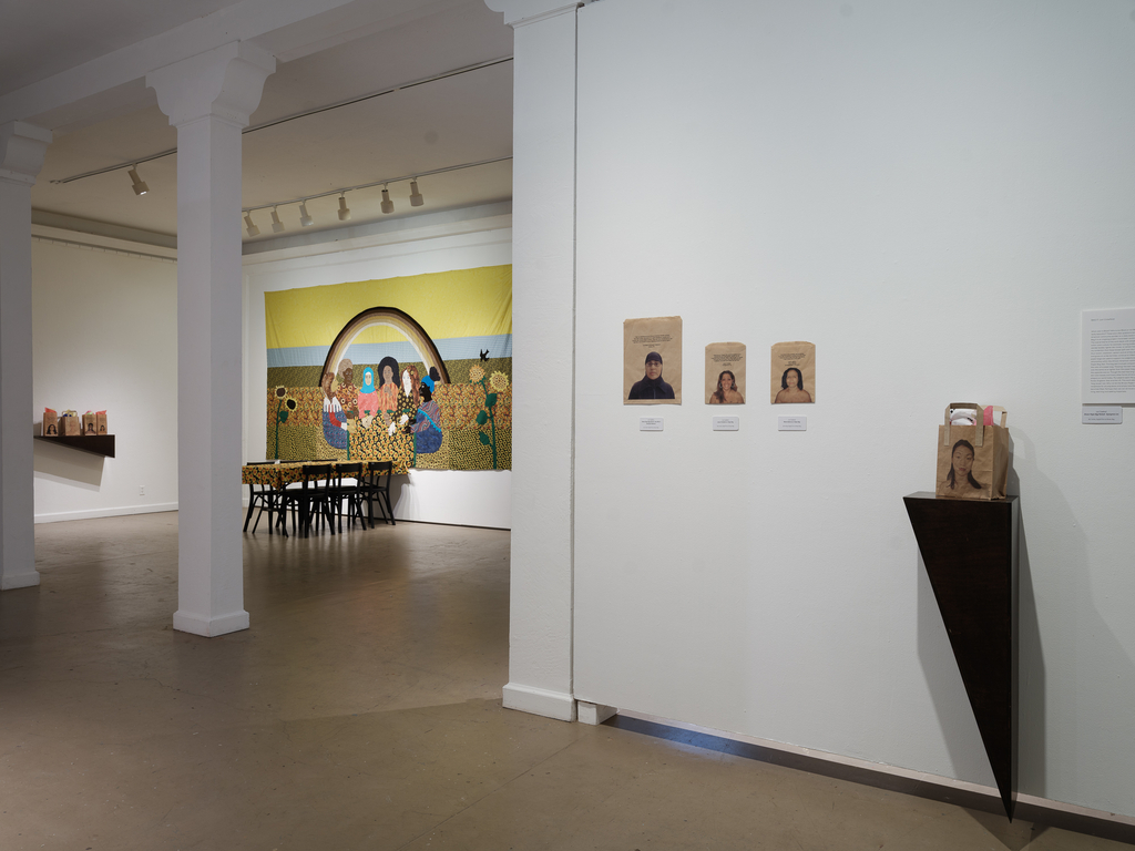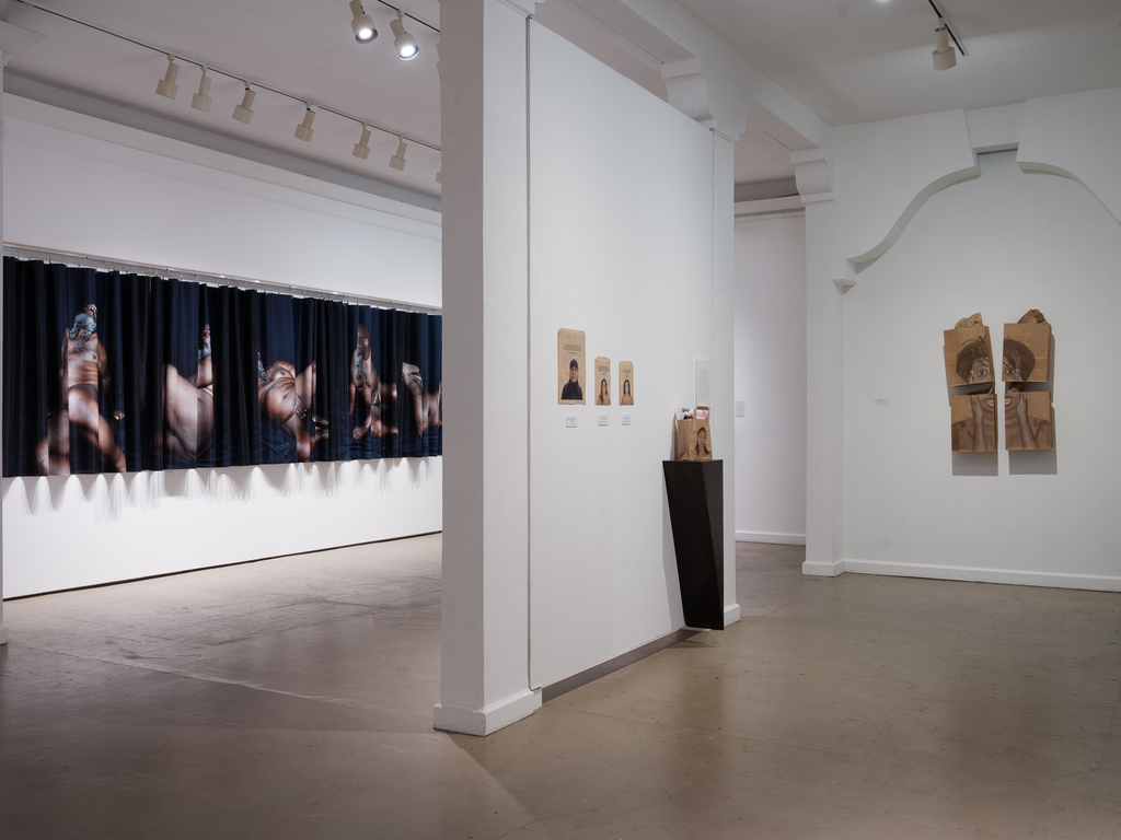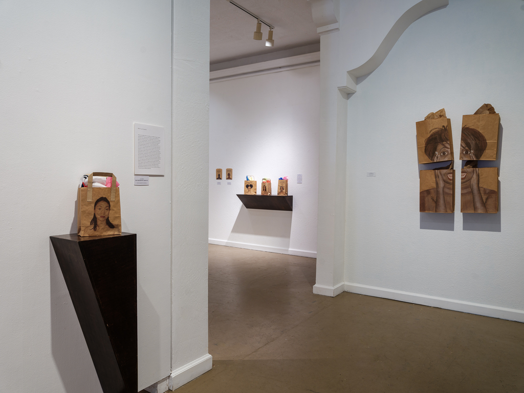 Skin tones are also central to Lori B. Crawford’s art, which features brown paper bags that reference a decades old practice, no longer accepted, within the African American community. Called the Brown Paper Bag Test, it involved comparing one's skin tone to the color of a paper bag to determine its acceptability.