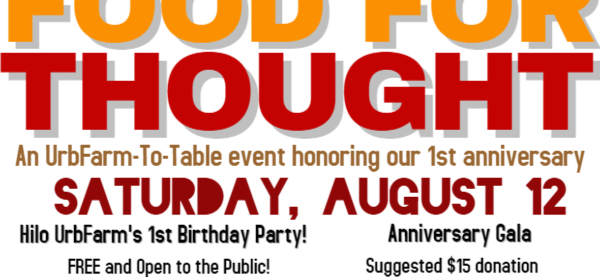 Join us for an evening of food, music, fun, and community building. The UrbFarm will have an open house party in on he nursery, then will switch gears to the first anniversary gala in honor of our partnership with the East Hawaii Cultural Center.