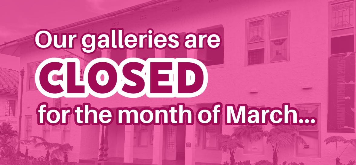 The galleries at East Hawaiʻi Cultural Center will be closed for the month of March as we prepare for our next two exhibitions opening in April. During this time, our curatorial team will be readying the galleries and installing new work for the experiences ahead. We look forward to welcoming you back at our April opening to share these new exhibitions with our community. Look out for more updates and information in our March e-newsletter and on our website. All other EHCC programs will continue as scheduled. Mahalo for your continued support!