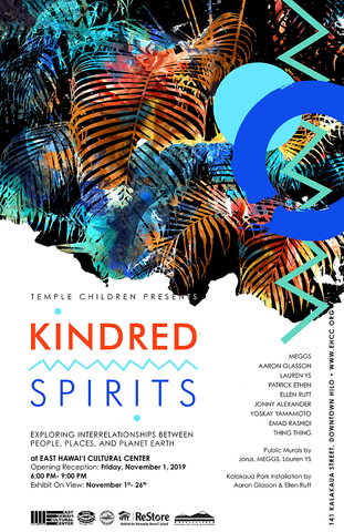 The East Hawai‘i Cultural Center is pleased to announce the opening reception of ‘KINDRED SPIRITS: Exploring Interrelationships Between People, Places and Planet Earth,’ an immersive and sensory exhibition curated by Temple Children and supported by the County of Hawai‘i.