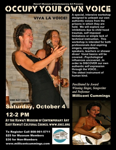A special, intensive workshop designed to unleash our own authentic voices from the prisons in which they are held. We will explore our inhibitions due to childhood traumas, self imposed limitations or simple lack of technical instructions. This workshop is intended for both professionals and aspiring singers, storytellers, speakers, teachers or shower divas! Vocal basics will be covered... Psychological influences uncovered... In order to DISCOVER our own authentic self expression through the VOICE... The oldest instrument of human kind.