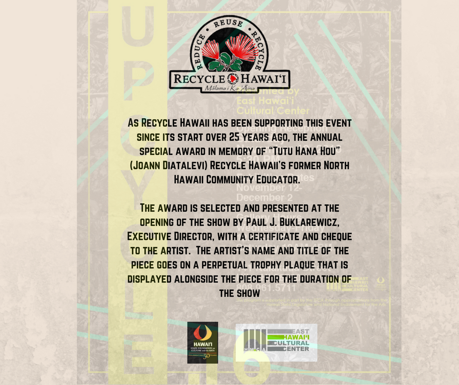 As Recycle Hawaii has been supporting this event virtually since its start over 25 years ago, we would like for EHCC to include mention of the annual special award in memory of “Tutu Hana Hou” (Joann Diatalevi) our f.png