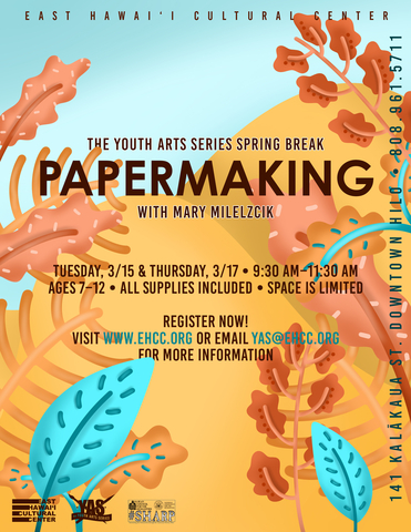 Keiki will view the ‘āina around us with a new perspective, as they use flowers, native plants, and even invasive plants to make paper. Recycled paper pulp embedded with flowers and other plant materials will be used to make paper for writing and art. We’ll also make handmade seed papers embedded with flower or herb seeds (instructions on how to plant included). Local earth pigments, plant dyes, and handmade marking tools will be used to embellish the papers. In the second class we will focus on utilizing pulp made from plants (lemongrass, lauhala, and ginger) to be formed into sheets of paper.