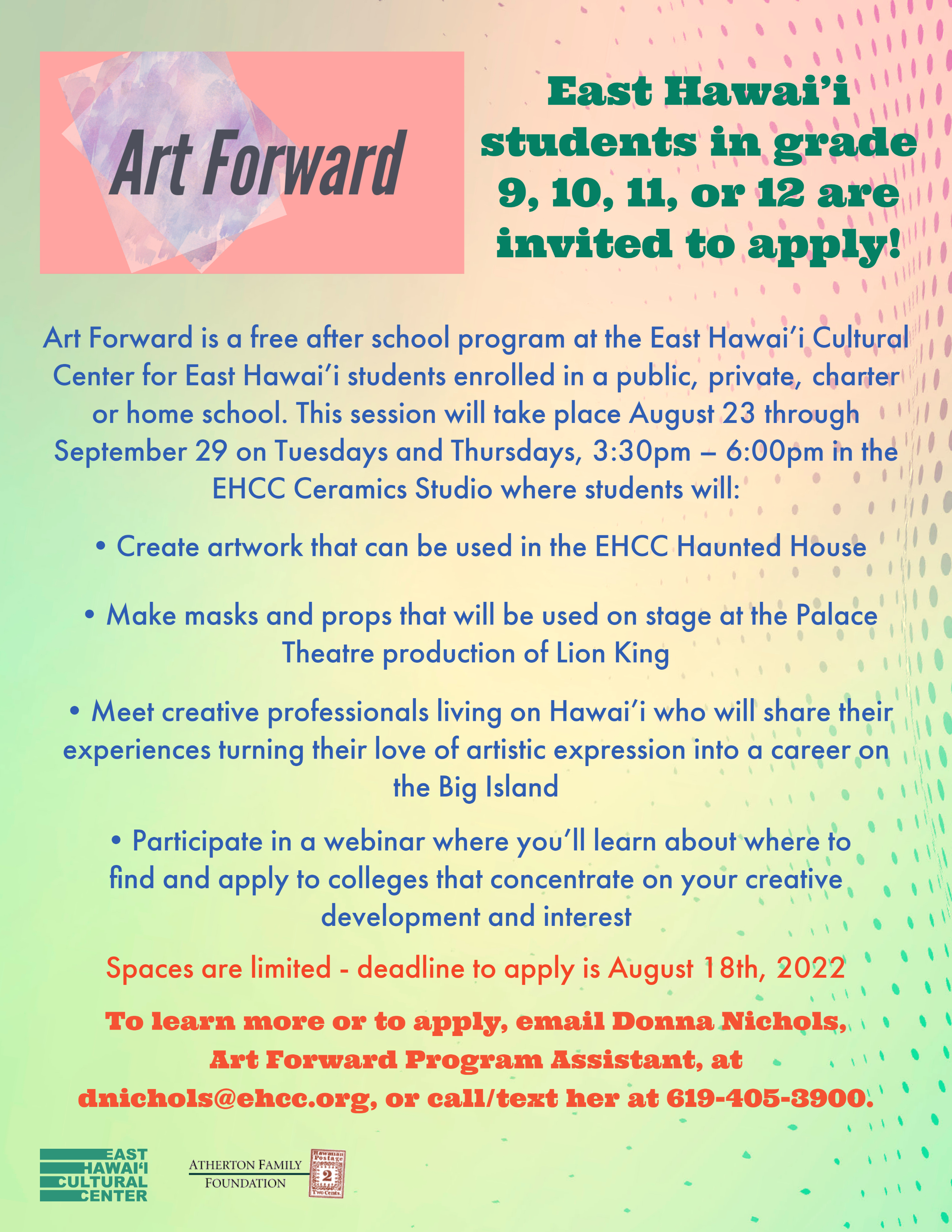 Who: Any East Hawai'i student in grade 9, 10, 11, or 12, enrolled in a public, private, charter or home school can enroll