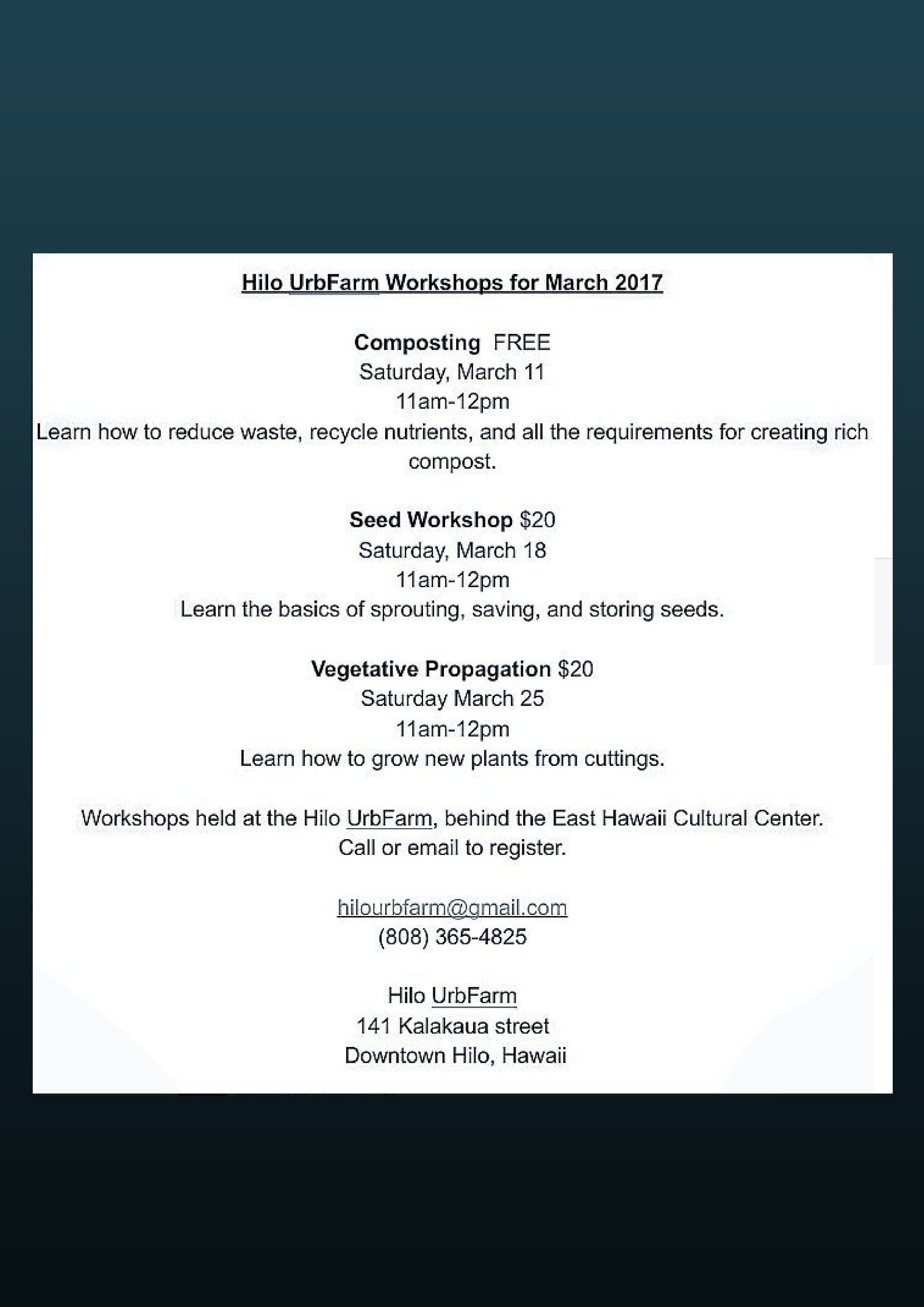 Hilo UrbFarm Workshops