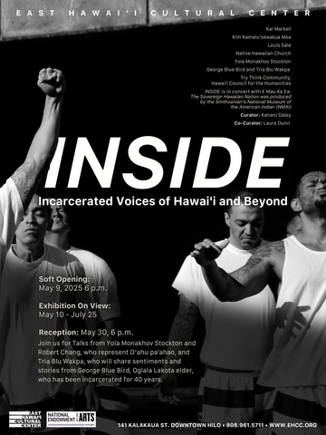 INSIDE, an exhibition for the pa‘ahao (incarcerated people) presents an urgent and compassionate portrait of those often rendered invisible, illuminating stories of hope and resilience through the humanitarian efforts of community advocates Kai Markell, Kim Kamaluʻokeakua Moa, Kahu Kaleo Patterson, Robert Chang, and Yola Monakhov Stockton. The exhibition also welcomes special guests hailing from Turtle Island: incarcerated filmmaker Louis Sále (native of Hawai'i) at San Quentin Rehabilitation Center, and scholar Tria Blu Wakpa in collaboration with incarcerated Oglala Lakota elder, artist, and writer, George Blue Bird. INSIDE is in concert with the Exhibit of E Mau Ke Ea: The Sovereign Hawaiian Nation was produced by the Smithsonian’s National Museum of the American Indian (NMAI). The E Mau Ke Ea Exhibition includes 18 free standing banners with text and graphics that introduces visitors to the complex and nuanced history of the Hawaiian Nation, from the consolidation of the islands by King Kamehameha I in 1810 to the resurgence of Hawaiian nationalism today.