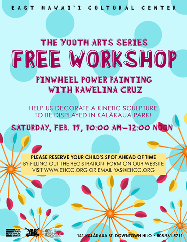 Take part in decorating a kinetic sculpture that will be displayed in Kalākaua Park during the month of March as part of our Pinwheel Power Youth Art Month project.