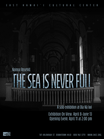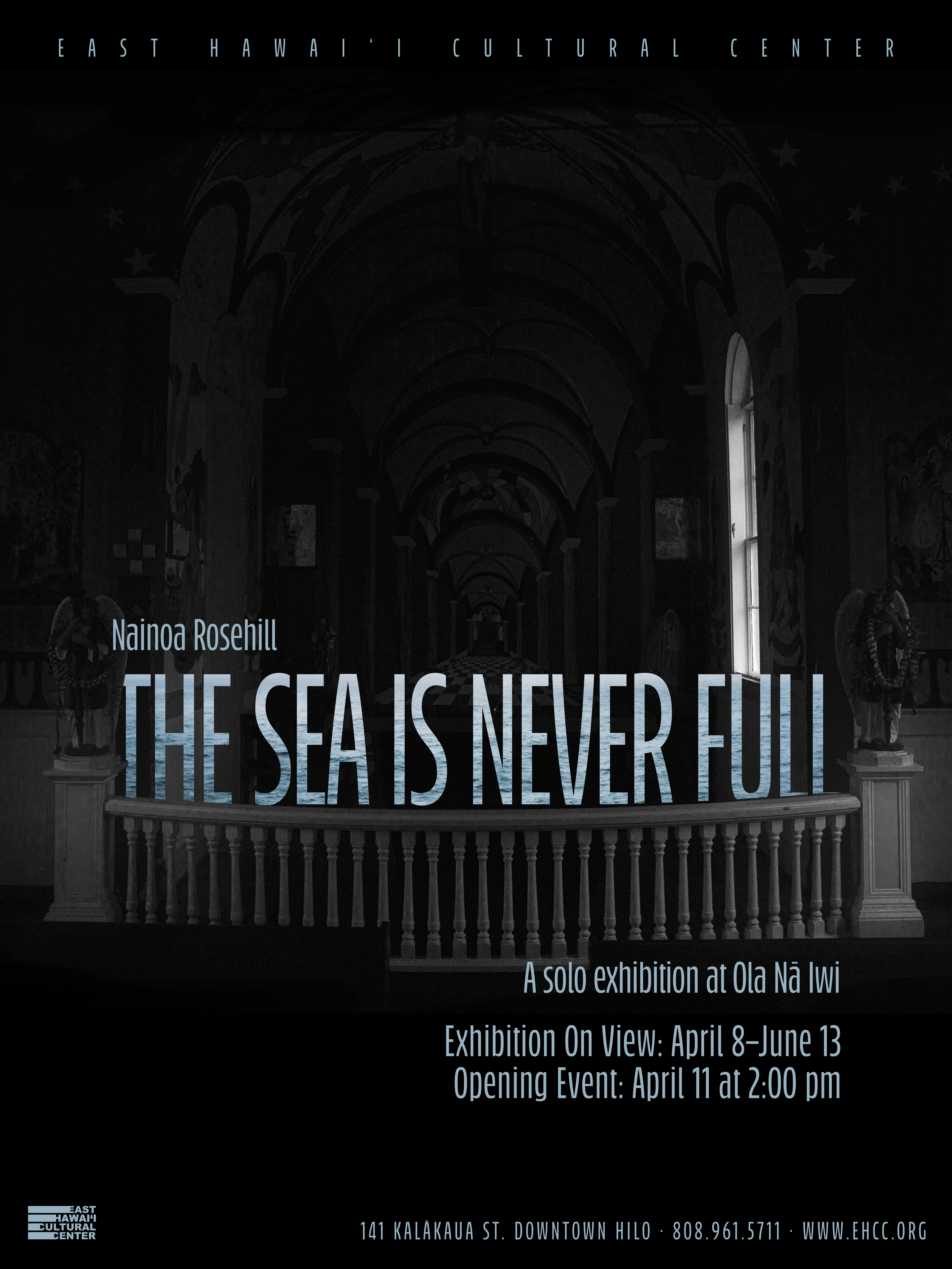 The Sea is Never full is a reflection on the power of peripheries, boundaries, limits. Pulling from the symbolic language of the oral and written histories of families displaced by volcanism, of the collapsing infrastructure within the rural Hawaiian villages, and of the historical Native Hawaiian churches as cultural sanctuaries. Through the traditions of sacred imagery, the fine-art applications of new media technologies, and the indigenous impulse to both resist and accelerate change, I aim to illuminate the overwhelming desire for meaning in times of crisis. The Sea is Never Full is a dream of extraordinary experiences that lie hidden in the smallest of places. The Painted Church is the last surviving remnant of the Hawaiian village of Kalapana, now buried under 100ft of lava– thus, it is a puuhonua for our narrative continuity as the errant descendants of the land. Lifted off its original foundation and saved from destruction; while personal property and possessions were left to the mercy of Peleaihonua (Pele-the-Earth-Eater); the work is an expression of the dreams of the periphery, their profound rebellion over unfathomable power, the extraordinary experience emerging from the ordinary source, and the proliferation of possibilities.