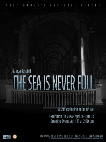 The Sea is Never Full is a reflection on the power of peripheries, boundaries, limits. Pulling from the symbolic language of the oral and written histories of families displaced by volcanism, of the collapsing infrastructure within the rural Hawaiian villages, and of the historical Native Hawaiian churches as cultural sanctuaries. Through the traditions of sacred imagery, the fine-art applications of new media technologies, and the indigenous impulse to both resist and accelerate change, I aim to illuminate the overwhelming desire for meaning in times of crisis. The Sea is Never Full is a dream of extraordinary experiences that lie hidden in the smallest of places. The Painted Church is the last surviving remnant of the Hawaiian village of Kalapana, now buried under 100ft of lava– thus, it is a puuhonua for our narrative continuity as the errant descendants of the land. Lifted off its original foundation and saved from destruction; while personal property and possessions were left to the mercy of Peleaihonua (Pele-the-Earth-Eater); the work is an expression of the dreams of the periphery, their profound rebellion over unfathomable power, the extraordinary experience emerging from the ordinary source, and the proliferation of possibilities.
