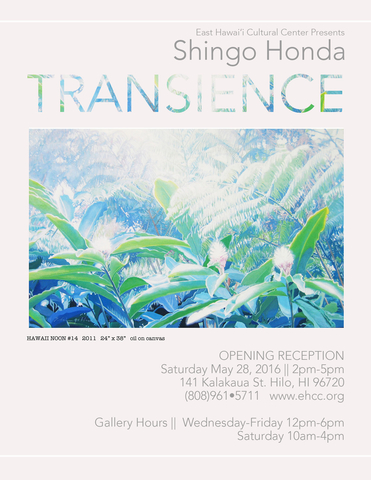 Shingo Honda in exhibition at the East Hawaii Cultural Center, Hilo Hawaii opening Saturday May 28, 2016 at 2:00pm through Friday June 24, 2016 features an exuberant selection of paintings and drawings. The episodic presentation includes graphite and colored pencil drawings; abstract and representational paintings executed in a range of media on both paper and canvas.
