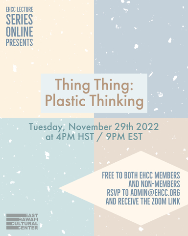 EHCC Lecture Series Online presents: Thing Thing: Plastic Thinking