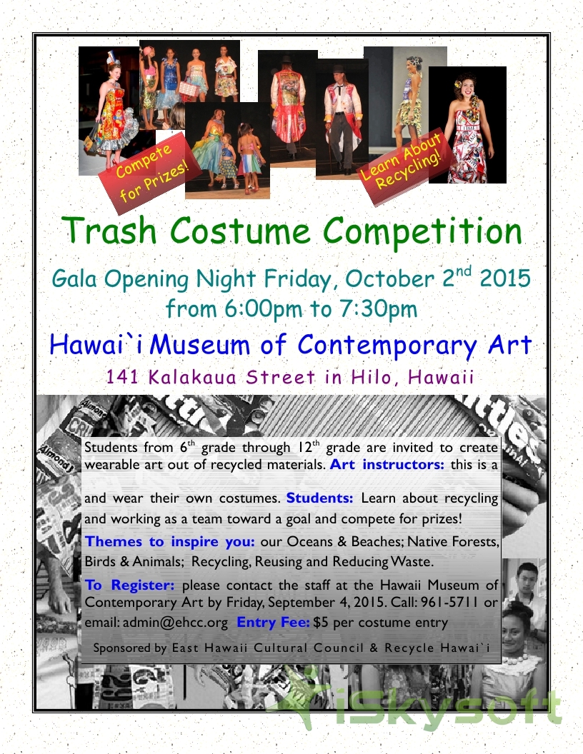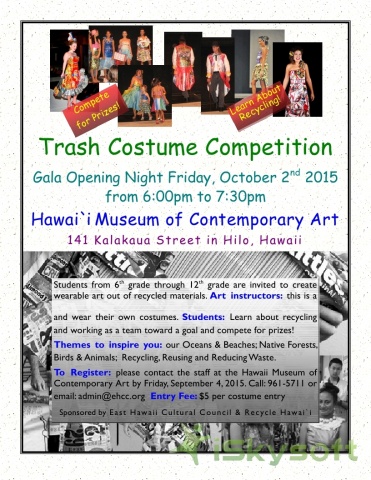Students from 6th grade through 12th grade are invited to create wearable art out of recycled materials.