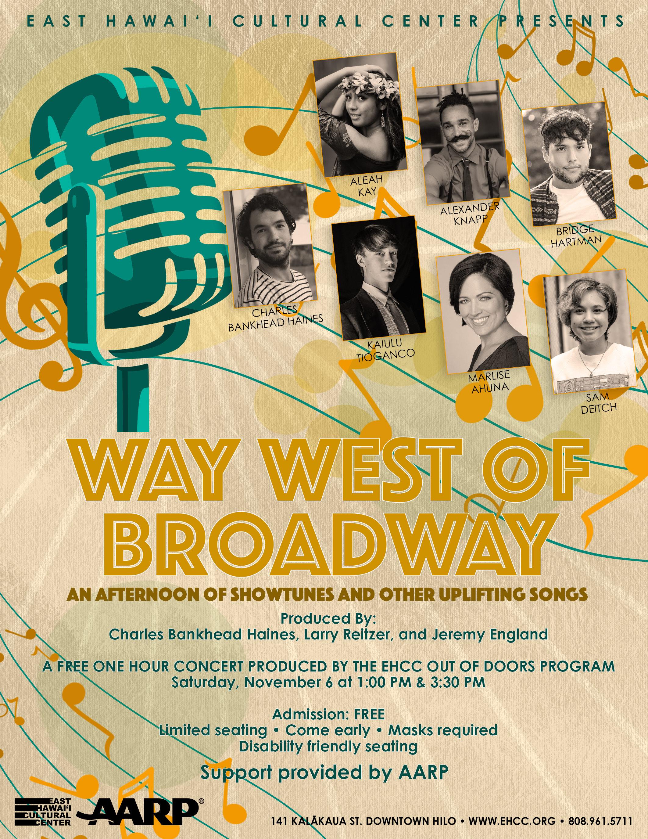Showcasing some of Broadways most beloved songs along with a mix of other popular songs old and new and performances by Charles Bankhead Haines, Alexander Knapp, Marlise Ahuna, Sam Deitch, Kaiulu Tioganco, Aleah Kay, and Bridge Hartman.