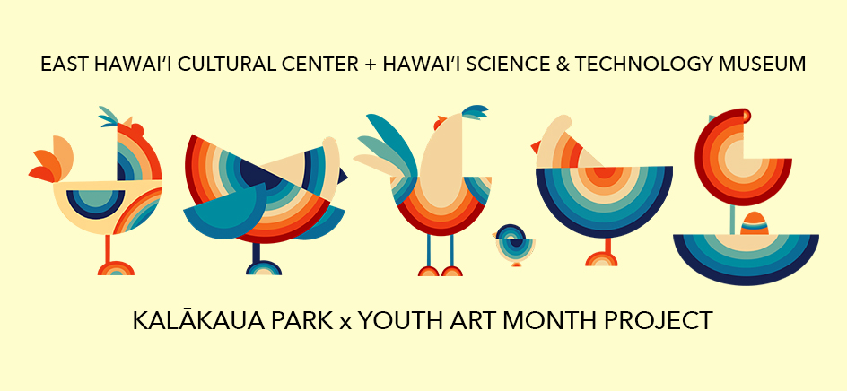 The East Hawai‘i Cultural Center (EHCC) Youth Art Month community art installation is an annual project on view in Kalākaua Park each March. The collaborative art display celebrates the importance of arts education for keiki and teens. In addition, it highlights the value of art in the community as a vehicle for collaboration and connection.
