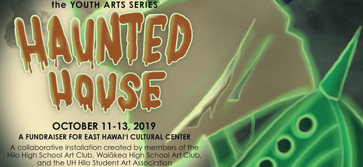 The UH Hilo Center for Community Engagement and the EHCC Youth Arts Series presents their 2nd Annual Haunted House! This year's installation is a collaboration between members of the Hilo High School Art Club in partnership with the UH Hilo Student Arts Association. The high school students have collaborated with local artist advisors, UH Hilo Faculty members, and members of the UHH SAA, to create an artful, zombie pirate themed, haunted house in EHCC’s Annex Building.
